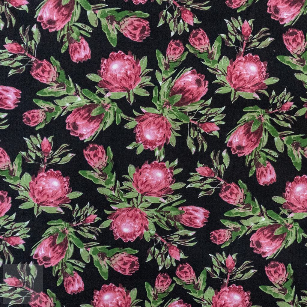 115CM PRINTED POLY COTTON SMALL PROTEA BLACK
