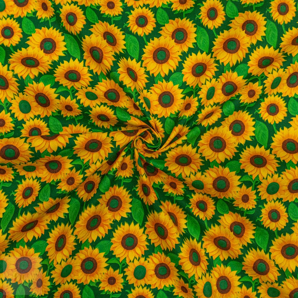 115CM PRINTED POLY COTTON SUNFLOWER GREEN