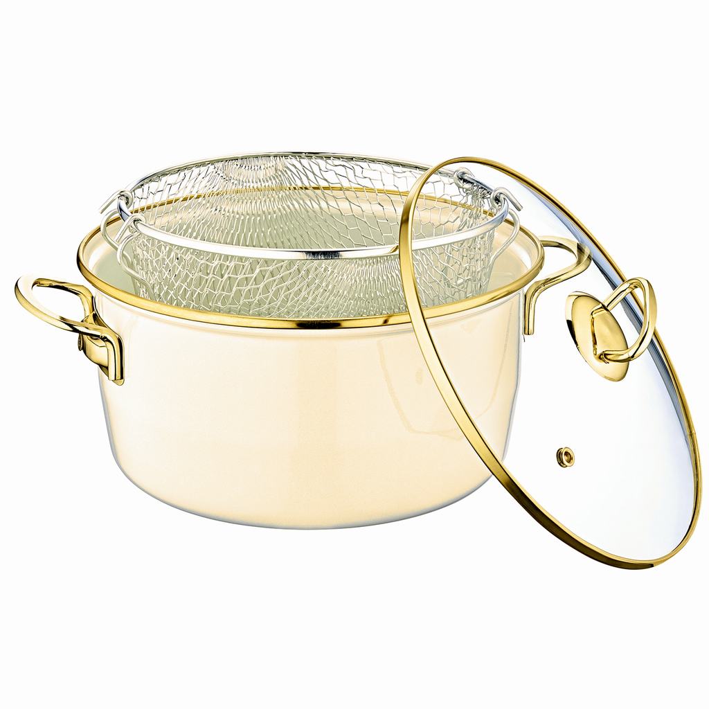 22CM ENAMEL FRYER WITH LID CREAM